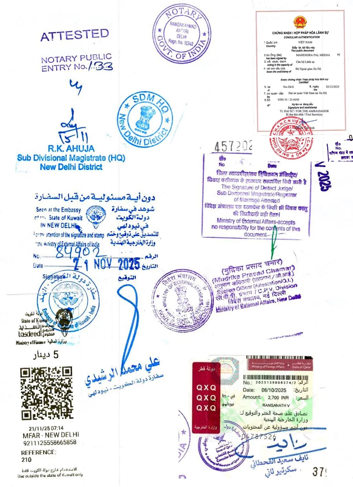 Embassy attestation for Vietnam, China, Qatar, Kuwait, Oman, Malaysia, Iraq, Iran, Sudan, Bahrain, Indonesia and all other nations with complete MEA coordination.